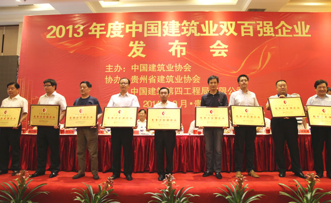 2013年度中國(guó)建筑業(yè)雙百?gòu)?qiáng)企業(yè)代表上臺(tái)領(lǐng)牌