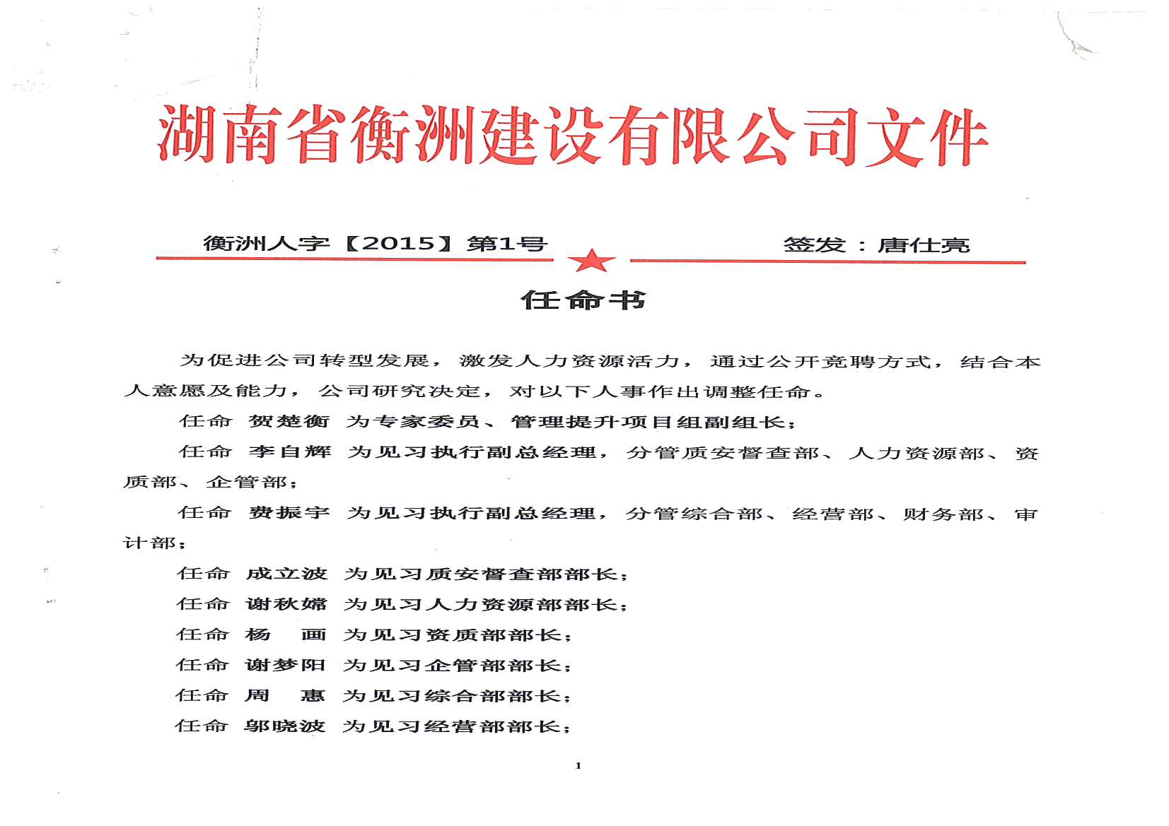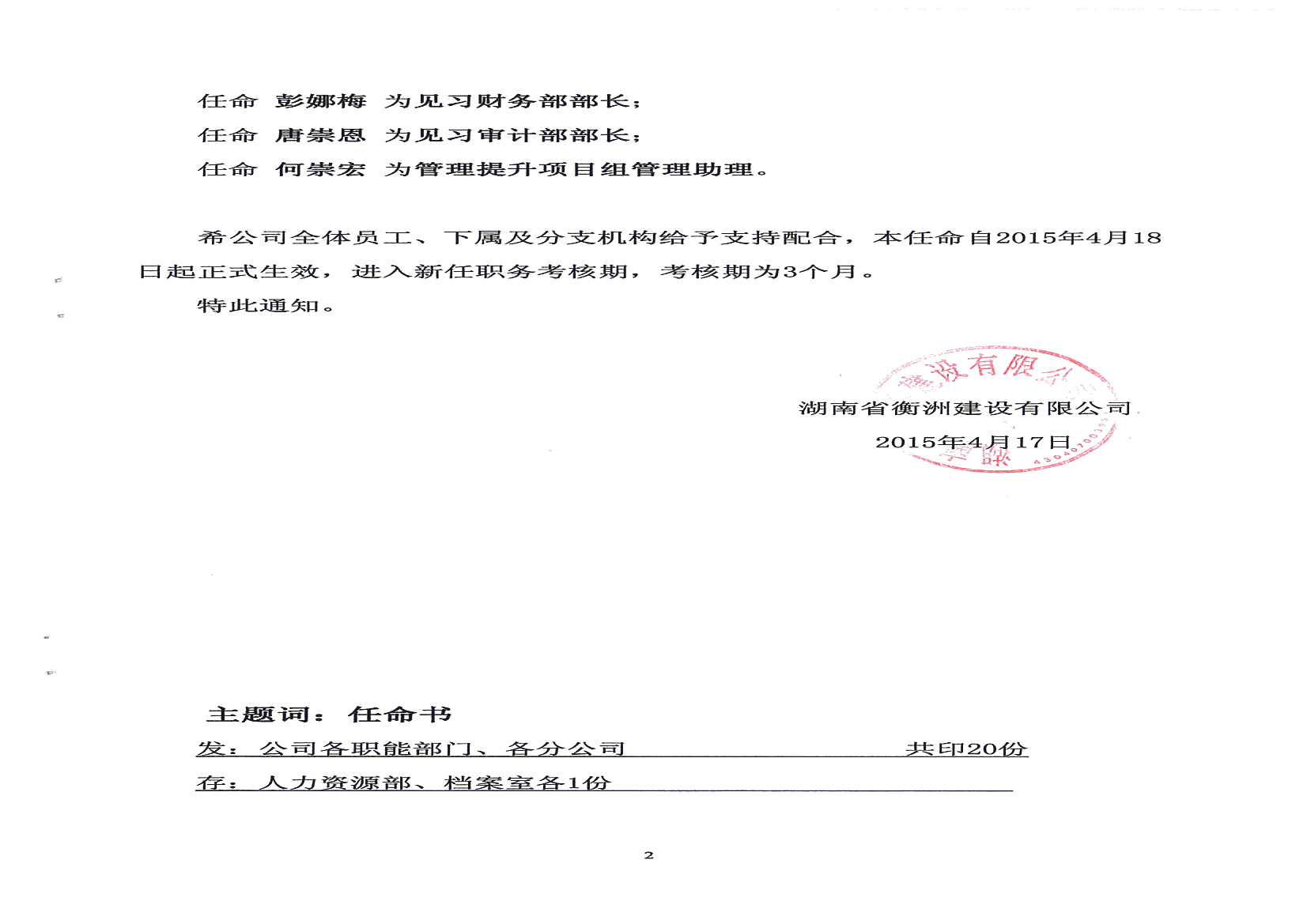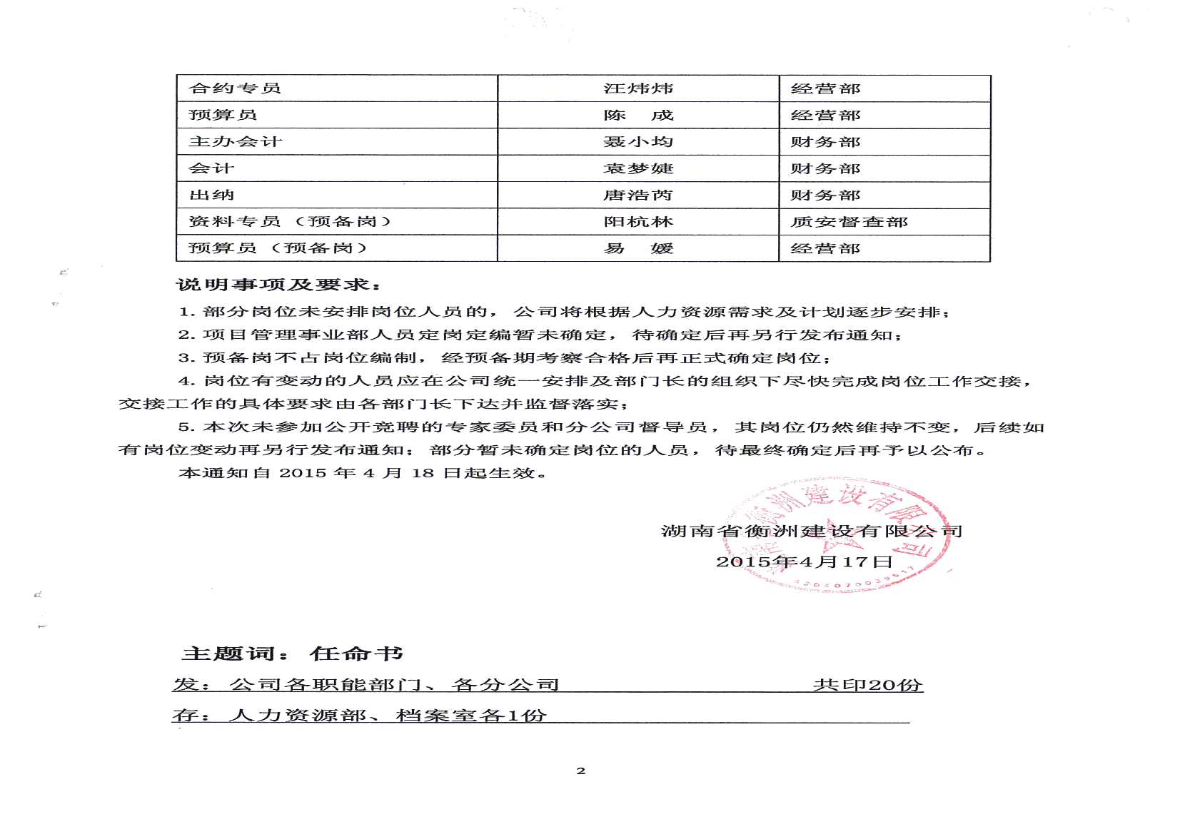 關(guān)于公司人事任命的通知
