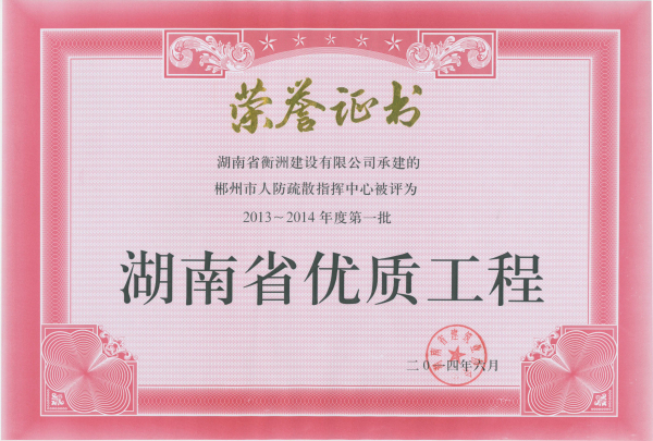 2013~2014年度第一批湖南省優(yōu)質(zhì)工程評(píng)選結(jié)果已公示,我司共五個(gè)項(xiàng)目獲獎(jiǎng),其中衡陽市項(xiàng)目四個(gè),郴州項(xiàng)目一個(gè),分別為湖南衡東電力有限責(zé)任公司生產(chǎn)綜合樓項(xiàng)目、衡陽市公安局石鼓分局業(yè)務(wù)用房項(xiàng)目、衡陽市中醫(yī)醫(yī)院住院部大樓及附屬樓工程項(xiàng)目、創(chuàng)景外灘綜合樓項(xiàng)目及郴州市人防疏散指揮中心項(xiàng)目。