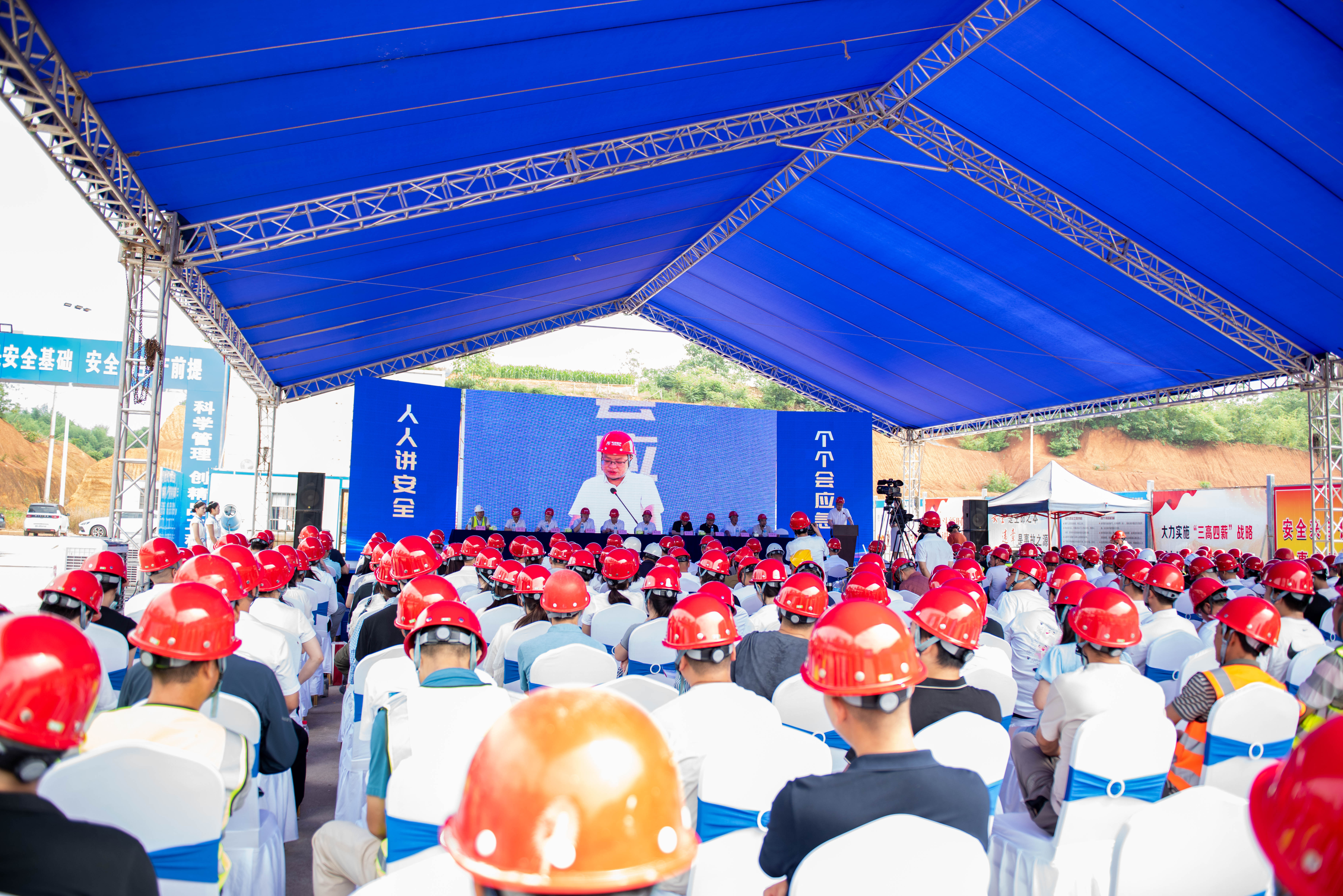 6 月 13 日上午,2025 年衡陽(yáng)市建筑施工“安全生產(chǎn)月”安全質(zhì)量標(biāo)準(zhǔn)化現(xiàn)場(chǎng)觀摩活動(dòng),在衡洲建設(shè)承建的衡南縣鄉(xiāng)村振興產(chǎn)業(yè)融合示范區(qū)項(xiàng)目(冷鏈項(xiàng)目)工程總承包(EPC)項(xiàng)目現(xiàn)場(chǎng)成功舉辦。本次觀摩會(huì)緊扣 “人人講安全,個(gè)個(gè)會(huì)應(yīng)急 —— 查找身邊安全隱患” 主題,創(chuàng)新采用 “主會(huì)場(chǎng) + 分會(huì)場(chǎng)” 實(shí)時(shí)聯(lián)動(dòng)、“線上+線下” 同步推進(jìn)的形式,全方位呈現(xiàn)了項(xiàng)目在安全生產(chǎn)標(biāo)準(zhǔn)化、綠色建造、建筑工業(yè)化方面的前沿理念,以及智慧化、質(zhì)量標(biāo)準(zhǔn)化、精細(xì)化管理的諸多亮點(diǎn)。衡南縣人民政府副縣長(zhǎng)周小云、衡南縣住房和城鄉(xiāng)建設(shè)局黨組書(shū)記、局長(zhǎng)全云生等領(lǐng)導(dǎo)及縣內(nèi)各建設(shè)項(xiàng)目的建設(shè)單位項(xiàng)目負(fù)責(zé)人、監(jiān)理單位、施工企業(yè)負(fù)責(zé)人等共 300 余人出席活動(dòng)。衡洲建設(shè)董事長(zhǎng)唐仕亮、總經(jīng)理唐崇宇參加啟動(dòng)儀式。唐崇宇總經(jīng)理在啟動(dòng)儀式上分享了項(xiàng)目創(chuàng)建安全生產(chǎn)標(biāo)準(zhǔn)化工地的做法與經(jīng)驗(yàn)。