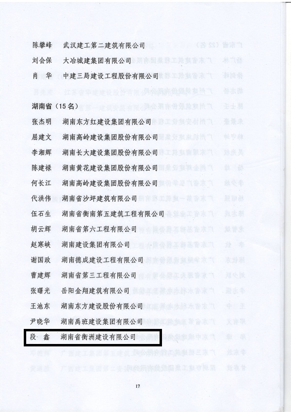 8月22日—23日,由中國建筑業(yè)協(xié)會主辦的“紀念國務(wù)院推廣魯布革工程管理經(jīng)驗25周年大會暨第十一屆中國國際工程管理峰會”在天津市召開。會上表彰了2011年度全國建筑業(yè)企業(yè)優(yōu)秀項目經(jīng)理,我司段鑫同志獲得了該項榮譽。此次,共有來自全國各地區(qū)、各行業(yè)建筑業(yè)(建設(shè))協(xié)會和有關(guān)單位推薦的的622名同志獲得了該殊榮。