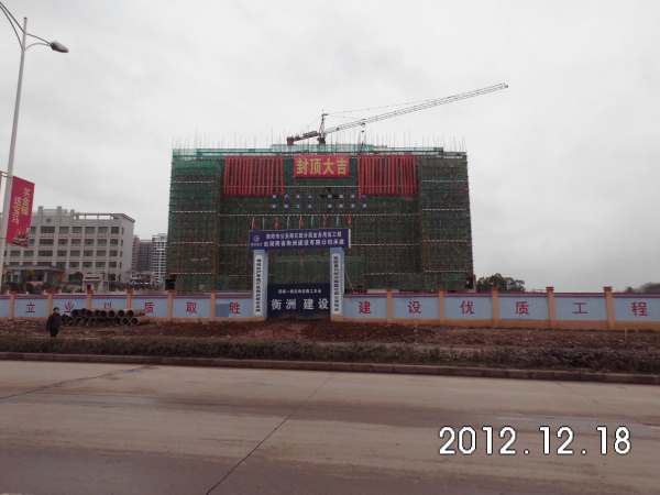 2012年12月18日上午,伴隨著最后一方混凝土的澆筑到位,在業(yè)主、監(jiān)理及項(xiàng)目部領(lǐng)導(dǎo)的見證下,由我司承建的“衡陽市公安局石鼓分局業(yè)務(wù)用房工程”正式完成主體結(jié)構(gòu)的封頂。