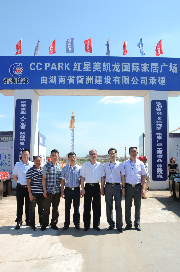7月10日,衡陽市市委書記李億龍、市長周海兵一行在我司董事長唐仕亮等人的陪同下,蒞臨由我司承建的CC PARK紅星美凱龍國際家居廣場工程項目部視察指導(dǎo)工作。