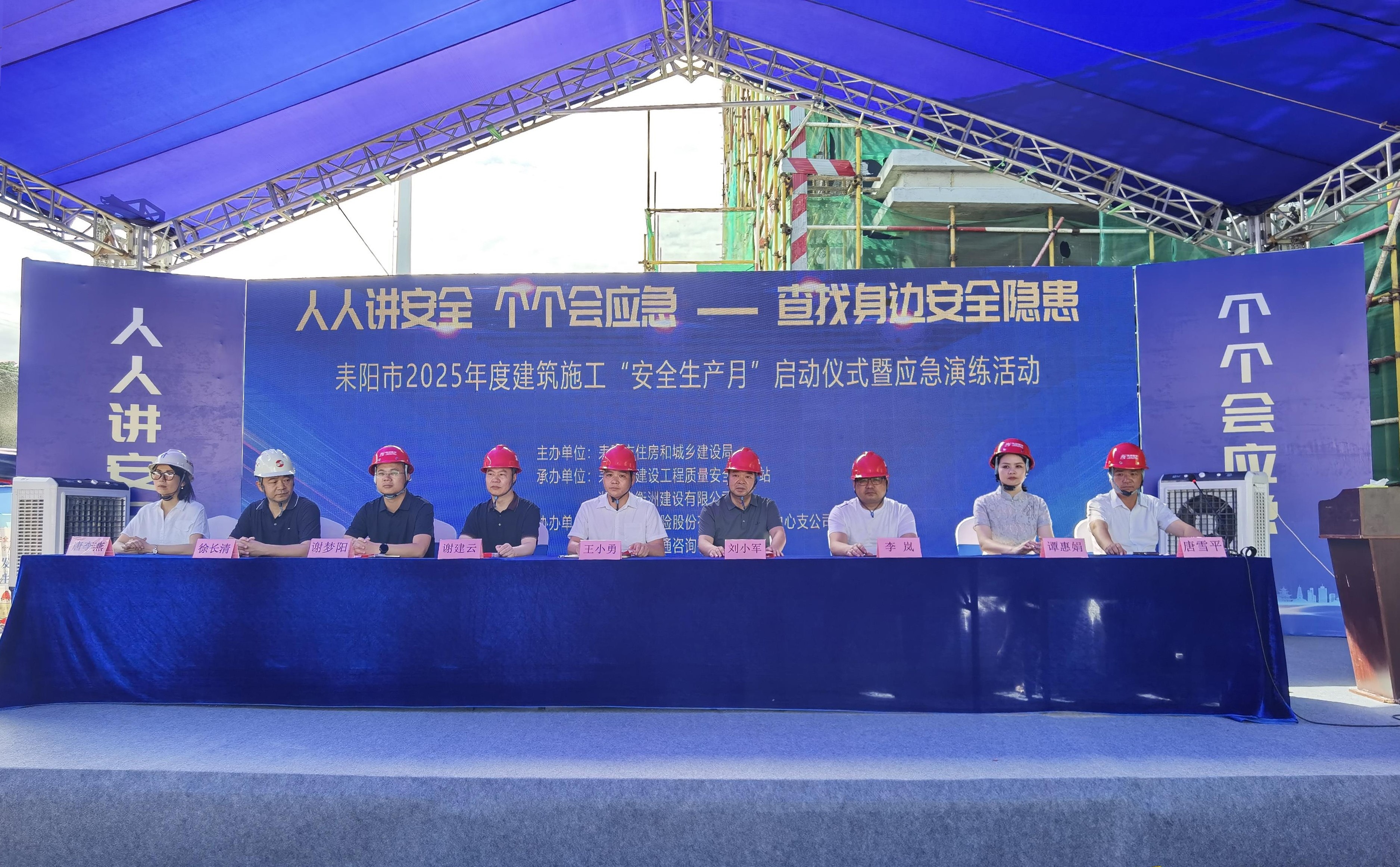 6 月17日,以 “人人講安全 個(gè)個(gè)會(huì)應(yīng)急 —— 查找身邊安全隱患” 為主題的耒陽市 2025 年度建筑施工安全生產(chǎn)月活動(dòng)啟動(dòng)儀式暨應(yīng)急演練活動(dòng),在湖南省衡洲建設(shè)有限公司承建的耒陽市 “二所合一”(看守所、拘留所) 建設(shè)項(xiàng)目現(xiàn)場成功舉辦。耒陽市住房和城鄉(xiāng)建設(shè)局總工程師王小勇,市住建局、質(zhì)安站等職能部門領(lǐng)導(dǎo),以及全市300余名在建工地建設(shè)、施工、監(jiān)理單位項(xiàng)目負(fù)責(zé)人齊聚一堂,共繪安全生產(chǎn)藍(lán)圖。