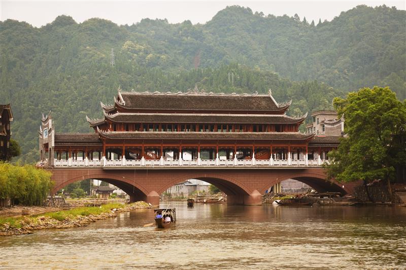杜田風(fēng)雨橋由左右兩部分橋體及橋上仿古廊亭組成;